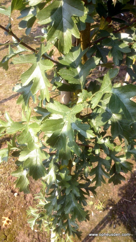 | Crataegus mordenensis Toba Crataegus mordenensis 'Toba' is een kleine boom met een ronde kroon en een hoogte tot 6 m. Doordat de takken iets gaan hangen wordt de kroon uiteindelijk breder. Aan de takken zitten doorns van circa 1,5 cm. Het grote groene en glanzende blad is diep ingesneden. De kleine gevulde bloemen staan in tuilen en verbloeien van roomwit naar lichtroze. Er worden slechts zelden vruchten gevormd, deze zijn rood. Geschikt voor straten, groenbermen en kleine tuinen. Verdraagt geen natte bodem. |