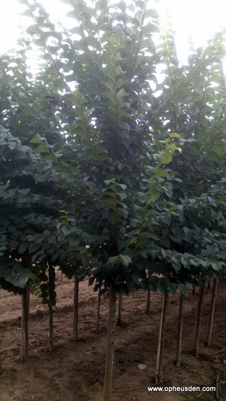 | |  Ulmus Lobel | Hoogte: | 15 - 18 m | | Kroon: | breed piramidaal | | Schors en takken: | glad, zilvergrijs, later met zwartgrijze groeven, twijgen olijfgroen | | Blad: | omgekeerd eirond, donkergroen, 6 - 9 cm | | Bloemen: | in dichte trossen op korte stelen, lichtgroen, maart/april | | Vruchten: | platte gevleugelde nootjes, rond tot elliptisch, bruin | | Toepassing: | laan- en straatboom, industrie, landschappelijk | | Grondsoort: | vochtig en luchtig, kalkminnend | | Windbestendigheid: | zeer goed, ook tegen zeewind | |